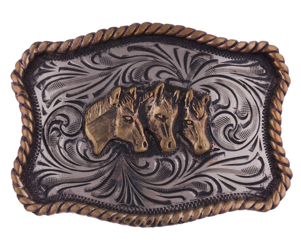 The trophy buckle is wearable Western art. The Horse Portrait Buckle from Appaloosa Trading is hand crafted of solid nickel to last a lifetime. The portrait group of three horse...