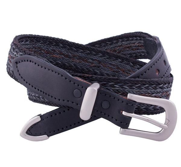 Horsehair braiding is a genuine Western art. The Braided Inlay belt is handmade in Colorado of 100% natural horsehair set into fine leather, with a handsome brushed 3-piece buckle set....