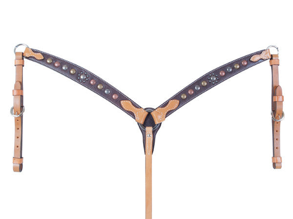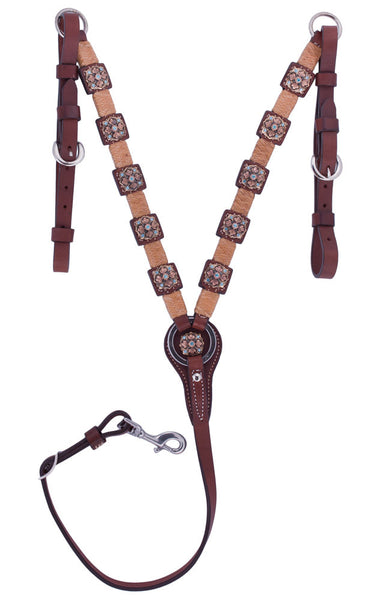 Here's a beautiful straight-style breast collar from Alamo's Jewelry on Tack Collection. The Caramel Toast bridle leather is decorated with resin-cast turquoise and stainless steel spots for a just-right look. ...