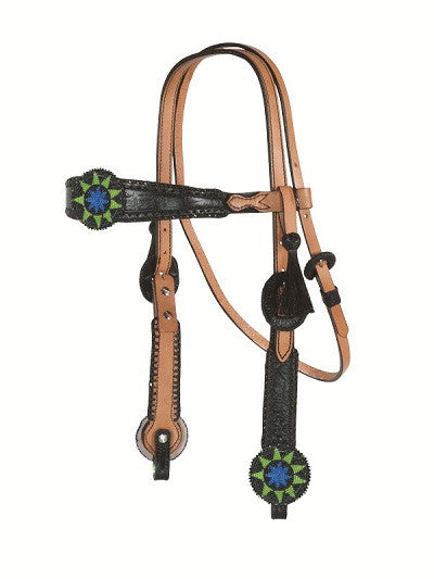 Here's a beautiful correcting show bit from Metalab that's a great everyday worker, too. The sweet iron low port correcting mouthpiece has copper inlays. The 7 1/4” loose cheeks have an attractive antique finish with overlaid stainless steel floral trims. A Metalab Level 2 (moderate) bit.