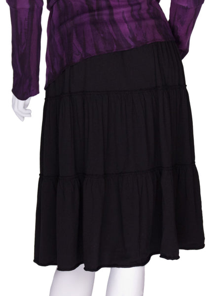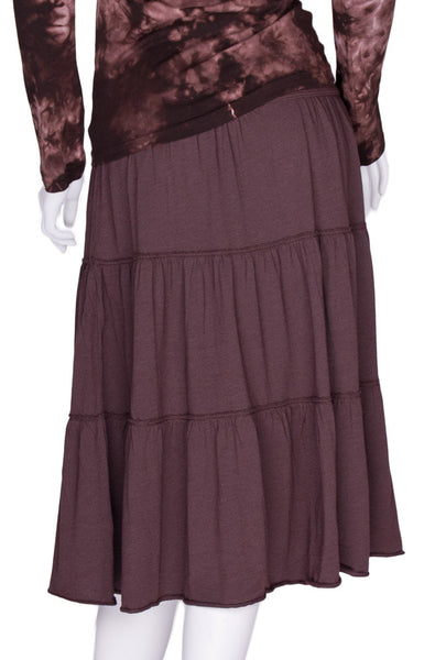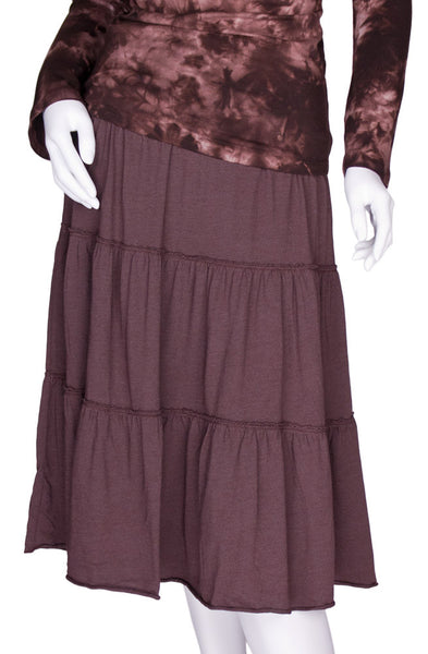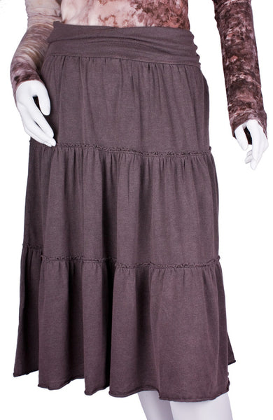 Everything old is new again with the versatile Badlands Tiered Skirt in warm desert colors. The three-tier styling has a relaxed yet graceful look. The scrunchy waistband and raw-edged hem let you customize your fit. Length falls just below the knee, to make a perfect match with boots or sandals. Beautifully soft in cotton/modal knit.
