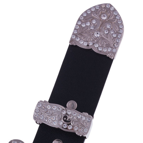 Horsehair braiding is a genuine Western art. The Braided Inlay belt is handmade in Colorado of 100% natural horsehair set into fine leather, with a handsome brushed 3-piece buckle set....