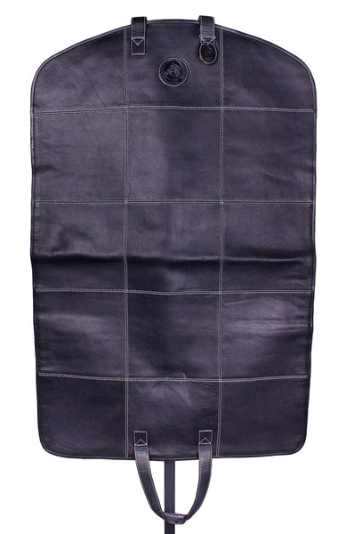 Lilo's Hamptons Leather Garment Bag is ideal for travel or horse shows. It's a practical luxury that will last a lifetime, handcrafted of soft grain leather with contrasting windowpane stitching. It features shaped shoulders, a sturdy full-length zipper, handles at each end for easy hanging or fold and carry, signature Lilo horsehead patch and fabric lining. The perfect size for dresses, suits & jackets, or of course, your best show clothes. Measures 38 inches x 24 inches x 1 inch. Made in Spain.
