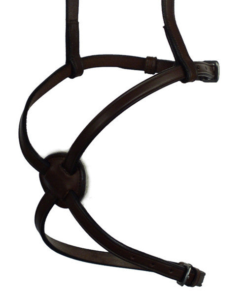 The McBride Figure 8 Cavesson offers security and comfort, with a fleece pad in the center. Shown here in Havana. McBride™ bridle parts are made of the finest English and European leathers and stainless steel hardware. Full, top grain leather is the strongest, most durable part of leather. McBride leather is aniline finished - never pigment (painted) finished. (Paint can cover flaws in leather and seals the surface, stopping proper penetration when you oil your tack.) We use only first quality hides, tanned and curried to look good, accept oil and darken and mellow as you use your tack. The stainless steel hardware is polished, strong and rustproof.