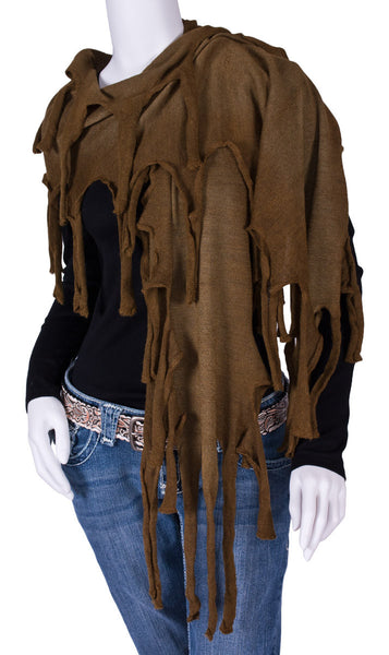 If a pirate's life is for you, or if you just want to express your free spirit, try the Pirata scarf for a touch of elegance that doesn't worry about the rules. Lightweight and drapy, with self-fringes and rolled edges, you'll find all kinds of ways to wear it freely. About 78 inches long by 9 inches wide (excluding fringes).