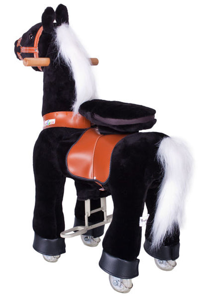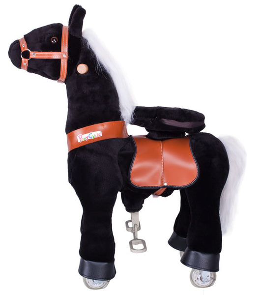 This is the Small-sized Pony, intended for children ages 3 to 5 years. Minor assembly required. Maximum load 55 pounds. Seat height is about 19 inches. Overall dimensions about 24.5 x 11 x 30 inches.