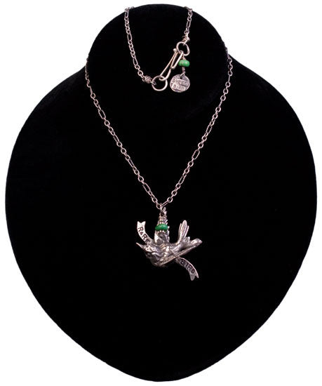 Yes, we've found the bluebird of happiness, taking flight just for you. Uniquely handcrafted by Sweet Bird of sterling silver in three-quarter relief, with her "Rare Bird" banner and bead...
