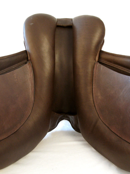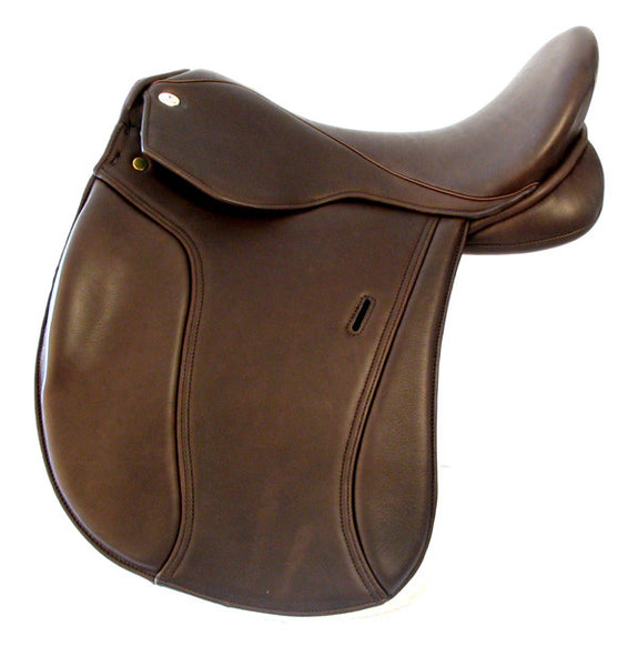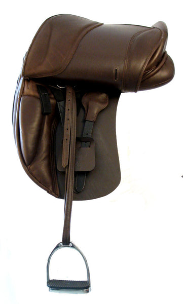 · A thin layer of neoprene is sandwiched between grippy glove tanned cowhide and bridle leather on skirts and flaps giving comfort and security. Seat is softly padded and grippy with medium twist.